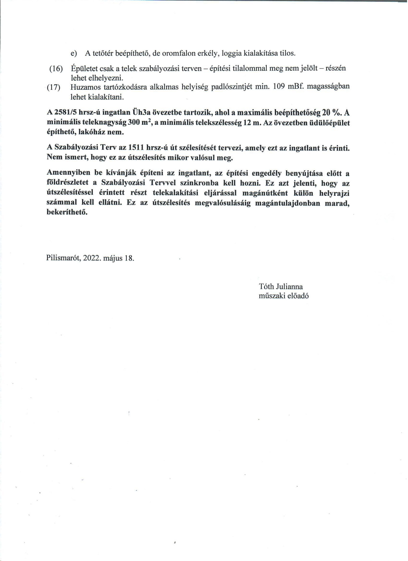 A telek 20%-ban beépíthető, maximum 3,5m építménymagassággal.