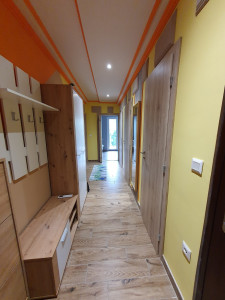 Első emeleti 2 szobás 54m2 erkélyes lakás kiadó. Szigetelt homlokzat. Fűtése 3 db H-tarifás klímával és 2 cserép kalyhával is. A homlokzat szigetelése és a korszerű nyílászárók miatt, a fűtése nagyon olcsó. Zárt udvaron belül gépkocsi parkolóval rendelkezik. Jó közlekedés a vasút autóbusz pályaudvar 3-4 percre a Tesco parkcenter szintén  a közelben.