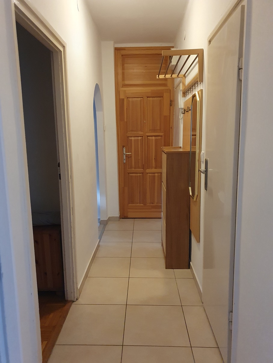 Bútorozott 1+2 félszobás II. em lakás kiadó. Fűtése villany kályhákról.