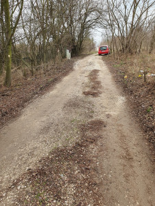 Esztergom kertváros Temesvári utca végén lévő, 1474m2 bekerített építési telek eladó.